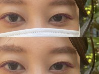 (右目黒目上、4mm程度穴があり、ボリュームラッシュ3束で穴埋め)